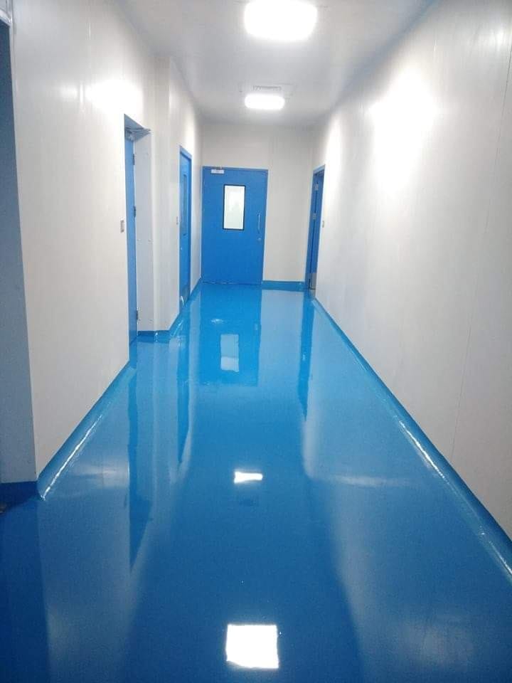 Epoxy flooring enhances durability, hygiene, and resistance against chemicals, abrasion, and moisture.